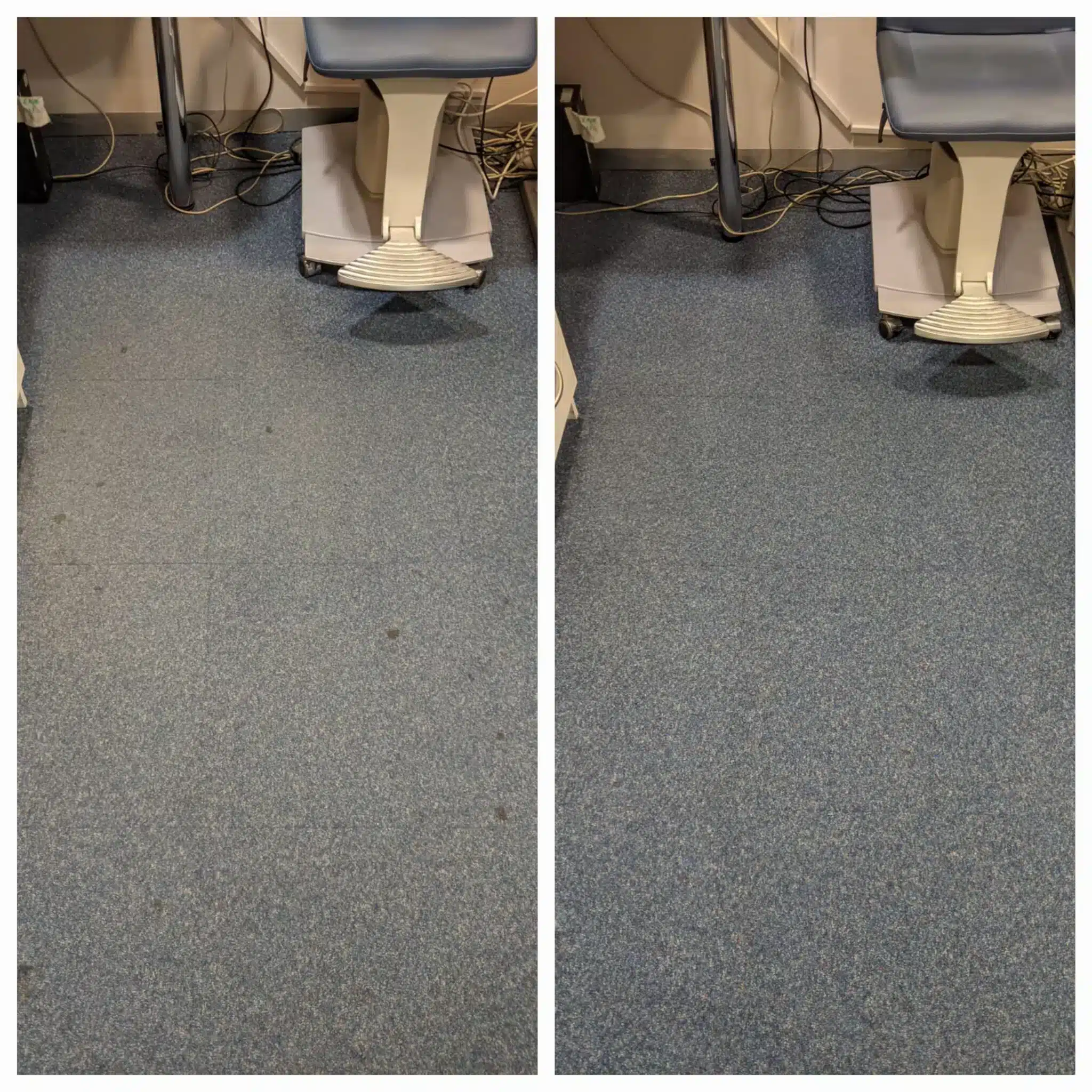 As a busy City of London branch, the store experiences significant footfall, leading to deep-seated organic soiling in the carpet fibres and discoloured grout lines on the hard flooring. All works must be performed out-of-hours with a strict requirement for the store to be 100% dry, slip-safe, and trade-ready for the first appointment the following morning.