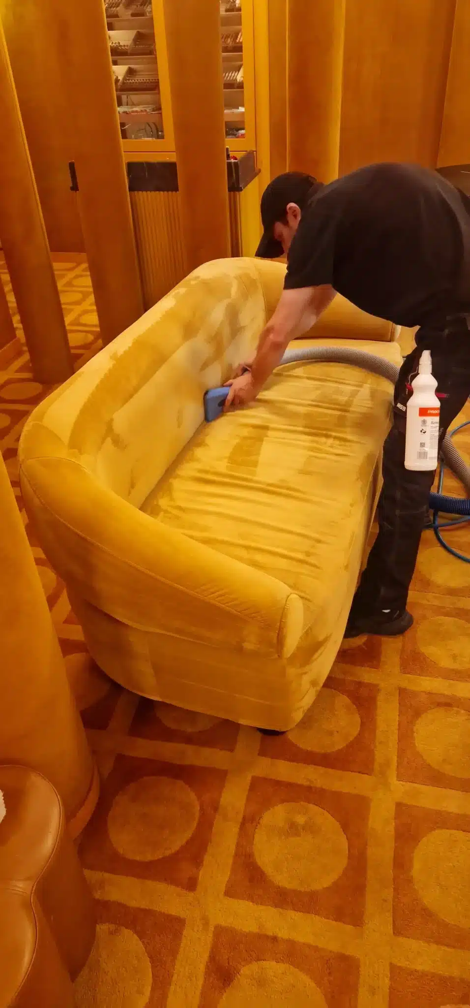 The primary challenge was the combination of high-value wool-mix fibers and the inevitable organic staining associated with a high-end restaurant and bar. With the members’ club operating on an almost 24/7 basis, our team had a strictly limited out-of-hours window to execute a full restoration, ensure complete drying, and remove all traces of cleaning chemistry before the morning service.
