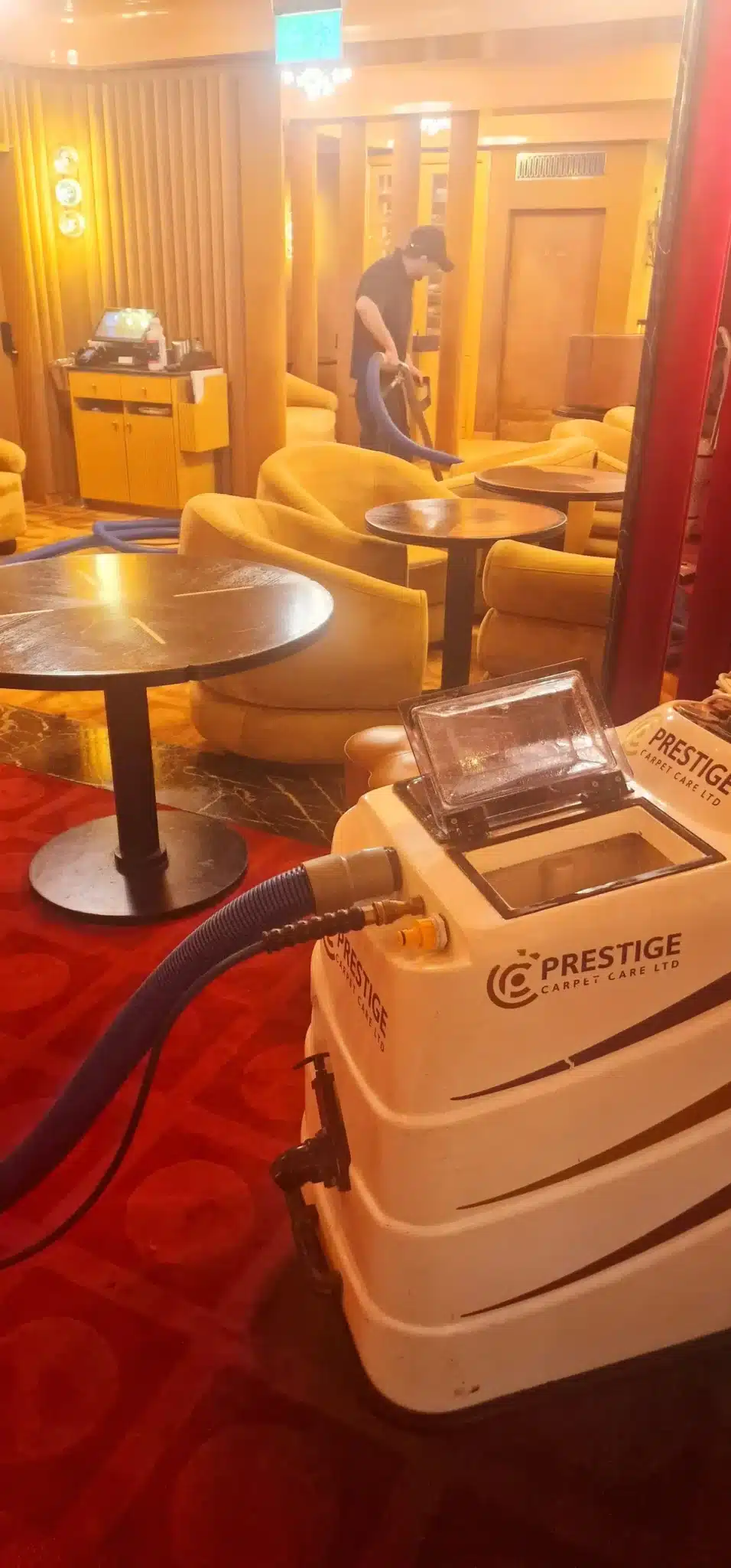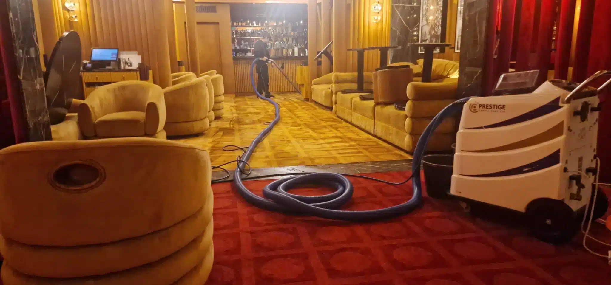 Prestige was commissioned to perform a restorative deep-clean of the bespoke carpeting within the exclusive members’ area of Langan’s Brasserie, Mayfair. As a landmark of London’s fine-dining scene, the environment demands an impeccable aesthetic and a maintenance partner capable of working around the clock to preserve its luxury interior.